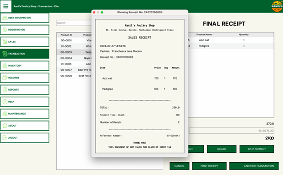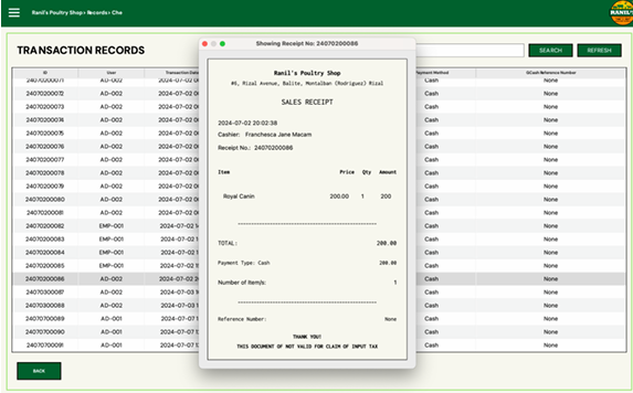 This project was completed during my 3rd year in college, I led development of an automated product management system for Ranil’s Poultry Shop to modernize and streamline its daily operations. The system replaces manual processes with automated sales handling, real-time inventory tracking, and secure data management, ensuring faster transactions and reduced human error. Built using Python for the application logic and interface, and MySQL for data storage, it follows the Incremental Model to support gradual improvements and feature expansion. Evaluated by both IT and non-IT professionals, the system was rated highly for its security, functionality, user-friendliness, and overall reliability. This solution significantly enhances operational efficiency and provides a scalable foundation for future business growth.